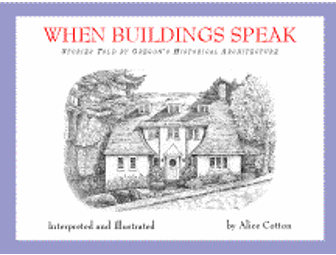 When Buildings Speak: Stories Told by Oregon’s Historical Architecture features a selection of beautifully illustrated landmark buildings that were built in Oregon between 1850 to 1940. In entertaining and eloquent prose, artist/author Alice Cotton describes her unique journey through Oregon’s cities and towns and the historic buildings she encountered along the way. In doing so, the author explores the ways in which historic buildings provide invaluable ties with those that came before us, the environment around us, and with our own personal creativity.
