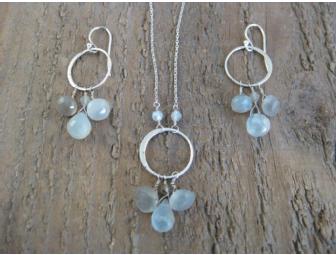 Enjoy this delicate and beautiful sterling silver and moonstone necklace and earring set. Made by Genevieve Broll.