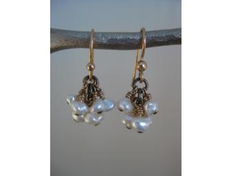 Enjoy these delicate and gorgeous fresh water pearl earrings wrapped with 14k goldfill wire. Made by Genevieve Broll.