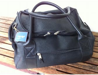 Enjoy this beautiful Mulholland men's black leather duffle gym bag.