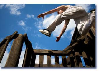 The essence of Parkour can be stated simply: it is the art of overcoming obstacles as swiftly and efficiently as possible using only your body. The fundamentals include running, jumping, and climbing, and we build on these fundamentals to improve our ability to pass over, under, around and through obstacles with more complex movements.