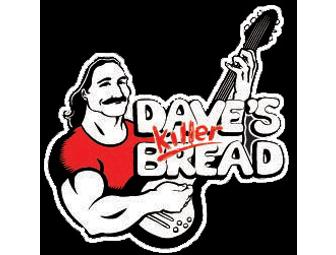 A killer basket from Dave's Killer Bread stuffed with killer goodies. Fresh bread is of course included! Basket includes 2 fresh loaves, a Sin Dawg, a Dave's Killer Bread T-shirt and a $20 gift certificate to the Healthy Bread Store.