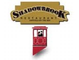 Shadowbrook is located beside lush Soquel Creek in Capitola-by-the-Sea, Shadowbrook Restaurant is best reached by its own quaint cable car, or a meandering garden path. Since 1947 Shadowbrook has continued to provide world-class service, fine food, wines and liqueurs in an atmosphere of Old-World charm and grace.