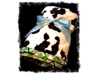 Super Soft Cow Patterned Microfiber Plush Baby Blanket with Silk Argyle Trim made by Saffron Paisley