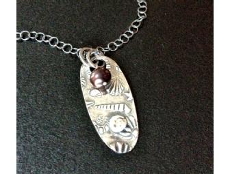 Share the love of the beach with this handcrafted fine silver charm pendant with black pearl on a 18" sterlng silver chain.