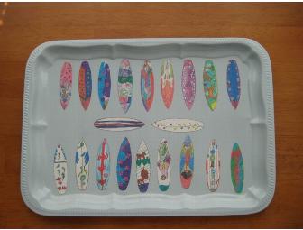 Our 3rd graders drew and painted pictures that represented how they like to celebrate the coming of Spring here in Santa Cruz. Watching out for birds, seeing the trees bud, going surfing, and spending more time at the beach. Once their pictures were done, the children laid out scenes and patterns with the pictures and glued them to a variety of trays and picture frames. Then, after many coats of protective acrylic were added, Voila! we have whimsical pieces of art!