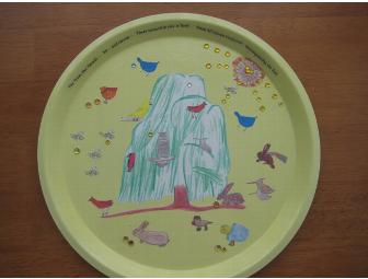 Our 3rd graders drew and painted pictures that represented how they like to celebrate the coming of Spring here in Santa Cruz. Watching out for birds, seeing the trees bud, going surfing, and spending more time at the beach. Once their pictures were done, the children laid out scenes and patterns with the pictures and glued them to a variety of trays and picture frames. Then, after many coats of protective acrylic were added, Voila! we have whimsical pieces of art!