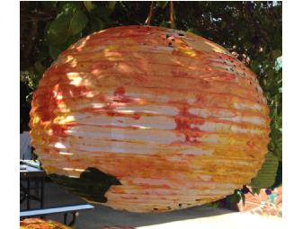 Students painted and collaged paper lanterns to create unique art pieces. Can be hung with a light for added depth and a dynamic room accent.