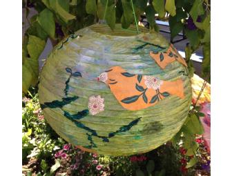 Students painted and collaged paper lanterns to create unique art pieces. Can be hung with a light for added depth and a dynamic room accent.