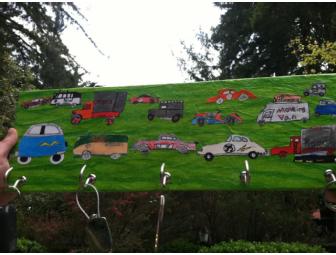 Students drew a variety of designs on the themes "cars" and "jewelry." The tiny detailed drawings were hand colored, cut out and decoupaged onto wooden frames.