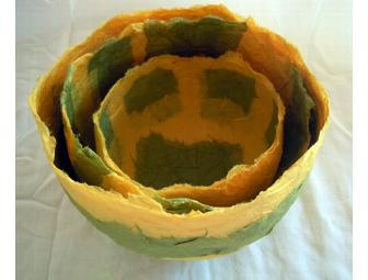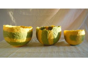 Art for your home or office- 3 decorative nesting bowls made out of paper mache. Made with layers of love by a our very own Westlake mom, Joan Lintz-Thompson.