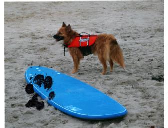 Kona is a German Shepherd mix. She took surf lessons from the “San Diego Surfing Academy” in the Summer of 2008.
