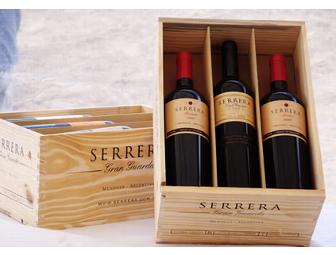 This package contain six bottles of 2006 Serrera Gran Guarda malbec from Mendoza, Argentina--the most prestigious malbec growing region in the world. Grown at an elevation of about 3000 feet, these grapes grow thick skins to protect themselves from the harsh elements. This is where the tannins develop.