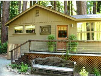 The charming “Wicker House” cabin is located in Cazadero, an easy drive for a weekend getaway. This stylish one-bedroom, one-bath house is located on a quiet cul-de-sac in the redwoods. You could spend your entire weekend enjoying the house’s outdoor amenities, including a creek-side deck with outdoor dining and kitchen, a hot tub, a fenced yard with Adirondack chairs, a large patio with firepit and hammock, and private creek access via easily-navigated stairs.