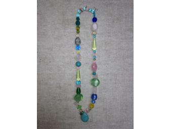A beautiful turquoise and glass bead necklace, handmade by SFS parent Sally Magnuson.