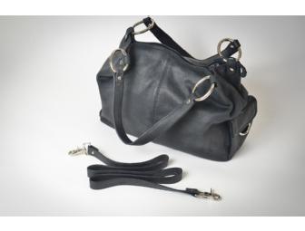 This is a handsome and versatile handbag in supple leather with an attachable strap to make it into a shoulder bag. Bag measures 14"W x 10"H x 4"D with outside pockets for your phone, a magnetic top closure, and two interior sections separated by a zippered pocket.