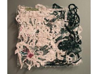Delicate wall hanging by textile artist and Urban alum Holly Badgley ('69) made from repurposed wool cuttings, stitched together. Measures 18" x 18".