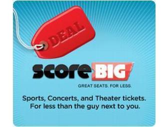 ScoreBig is an exclusive, members-only resource for live event tickets all below retail. Free membership comes with access to a constantly updated and growing inventory of over 400,000 live sports, theater and music events across the country. Easily searchable by event location, date, type or name, inventory includes tickets in all seating areas, and is always priced below retail price. And for stress-free shopping, whatever the event, all of ScoreBig’s tickets are backed by our 100% guarantee.