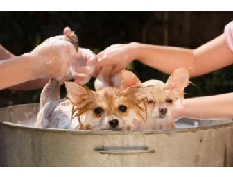 This gift certificate entitles you to 1 dog wash for a medium dog.