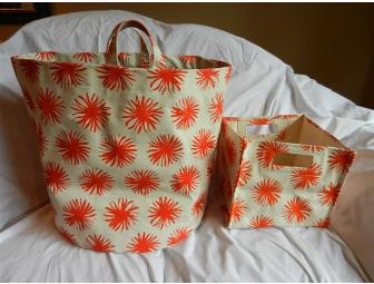 Jumbo and mini hamper in a fun orange print. A great gift for a grad, a newlywed or yourself!