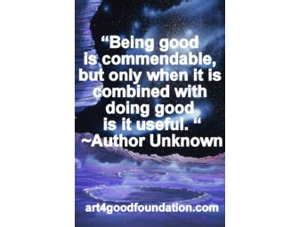 Have you ever heard a GREAT inspiring or fun QUOTE and thought, "I wish I could see that on my wall of my home or office each day?" Now you CAN! Our creative design team has mastered a series of wonderful visuals of "good vibrations" for everyone to share! Originally planned for "Art2Wear" and other goodies (like coffee mugs and messenger bags, totes, etc), we thought it might be a cool idea to share these with ALL of YOU, as way cool gifts for your friends, and to remind you that with each one you "buy now": 100% of net proceeds will be applied to the development of "The Ultimate Collection Series": Coffee Table Books that mash up ART and POETRY, in development now to inspire, encourage, and SUPPORT more Creative Project participation in schools!