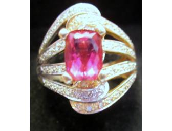 BEAUTIFUL DEEP PINK, GENUINE RUBELLITE TOURMALINE AND DIAMOND CUSTOM DESIGNED RING!