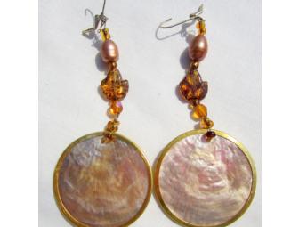 BJE 102:REAL SAND DOLLAR EARRINGS w/pearls and crystals