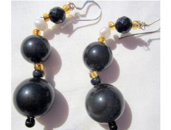 BJE 107 Genuine Black Onyx, Pearl Dangle Earrings!