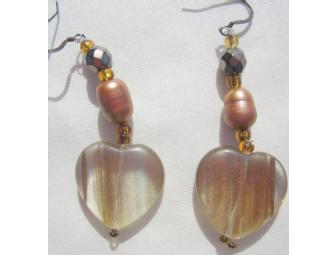 BJE 130 CRYSTAL HEART DANGLE EARRINGS WITH BRONZE PEARLS