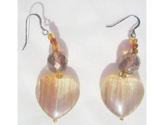 BJE 131 CRYSTAL HEART DANGLE EARRINGS WITH AURORA BRONZE CRYSTALS!