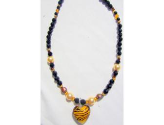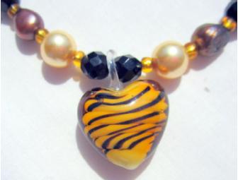 BJN 115 ONYX, PEARL, TIGER HEART NECKLACE! ONE OF A KIND/HANDCRAFTED!