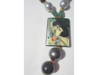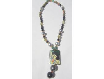 MULTI GEM NECKLACE FEATURES A WORK OF ART, HAND PAINTED FROM RUSSIA!