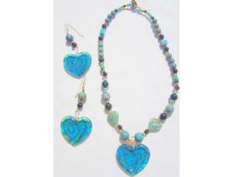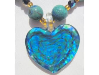 FEATURES TURQUOISE, ONYX AND RARE GEMSTONES AND LARGE ART GLASS HEARTS