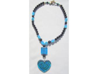 BJN167 HAND CRAFTED, ONE OF A KIND, HEART NECKLACE WITH ONYX BEADS!