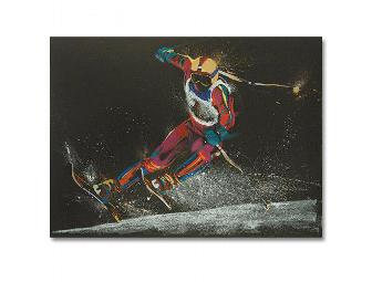 With vibrant colors and powerful lines, Terry Rose expertly renders the energy and motion of athletes."Downhill Racer" is a Limited Edition serigraph on paper, numbered and hand signed by the artist. Includes Certificate of Authenticity!