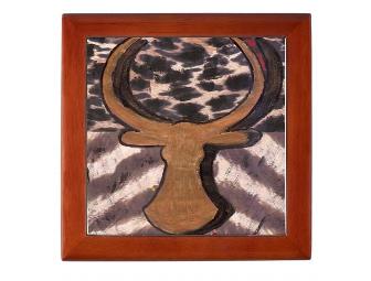 Measures 5.5" x 5.5" x 2.25" with a 4.25" x 4.25" ceramic tile that features this amazing work of ART!