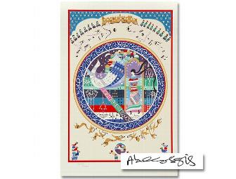 Raphael is heralded as one of the new generation of Israeli artists with worldwide recognition. Drawing on the rich Jewish tradition, to which he brings his tremendous talent, Abecassis has developed a strikingly unique style, combining Jewish symbols, Sephardic motifs, and modern composition into a well harmonized bold celebration of color.