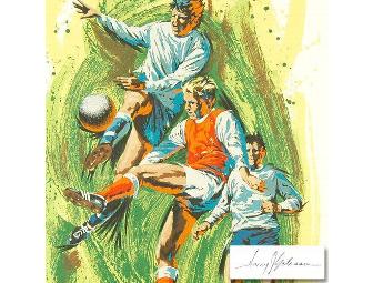 Harry Schaare captures the movement and excitement of the game in this vivid artwork! "Soccer" is a limited edition lithograph on paper, numbered and hand signed! This piece was acquired in a gallery close-out and there is no specific certificate information available.