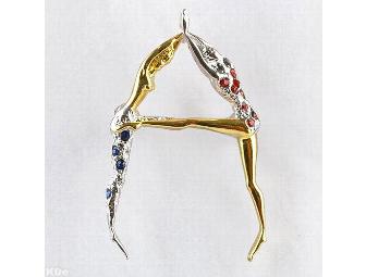 From "The Father of Art Deco" ERTE! Dazzling "A"-shaped Pendant/Brooch, made of Gold-Plated Sterling Silver, with Hand-Set Swarovski Crystals! ** List Price: $395.00