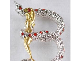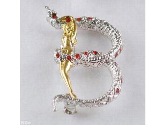 From "The Father of Art Deco" ERTE! Dazzling "B"-shaped Pendant/Brooch, made of Gold-Plated Sterling Silver, with Hand-Set Swarovski Crystals! ** List Price: $395.00