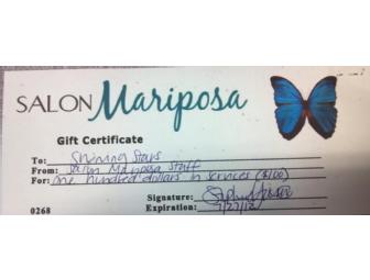 It is our mission at Salon Mariposa to provide our clients with the highest degree of customer service in a professional and comfortable environment. We are committed to performing our crafts to our best ability and continually strive to improve ourselves and our talents. We all enjoy what we do very much and we aim for our clients to be pleased with their experience here as well.