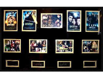 The Harry Potter books are a very popular series of fantasy novels written by J.K. Rowling that have spawned into extremely popular films and video games. This limited edition masterpiece collage features pictures of all four of the main characters including Daniel Radcliffe, Emma Watson, Michael Gambon, and Rupert Grint, professionally double-matted and framed with miniature replica movie posters. Certificate of Authenticity included.
