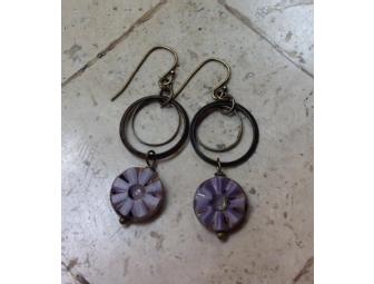 These fun little earrings are handmade with Czech glass beads and antiqued brass findings. They measure about 2 inches in length.