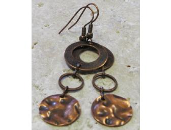 These earrings are handmade with antique copper findings and measure about 2 inches in length.