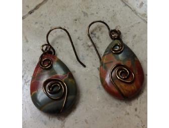These beautiful earrings are handmade with Picasso Jasper stones and antiqued brass findings. They measure about 2 inches in length.