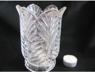 Timeless cut Crystal Tea Light Hurricane. Catches the light beautifully! Can also be used as a Vase. 6" tall.