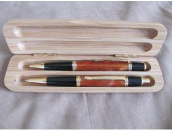 Beautiful custom made Wall Street pen and pencil set turned from man made acrylic. Beautiful wooden handcrafted case included.
