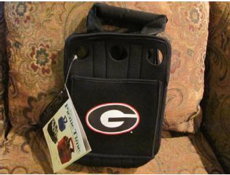 Insulated, compact carry tote that holds six bottles or cans...sports the big "G" for Georgia fans! Made from heavy-duty, form fitting neoprene fabric with neoprene-wrapped handles, has large exterior utility pocket, and six die-cut holes to loop over bottlenecks to hold them in place.