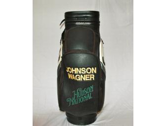 Become the proud new owner of a golf bag that has made its way around the PGA Tour. Donated by local PGA Tour Professional, Johnson Wagner, who is currently 5th in the FedEx Cup Points Standings. This bag was recently part of his bag rotation on the Tour. It carries his name as well as the logo from Hudson National Golf Club located in Croton-on-Hudson, NY right outside of Manhattan. This prestigious golf course was one where Mr. Wagner played and caddied during his youth. After he earned his card and found success on the tour they asked him to be an Honorary Member of the club and in appreciation he added their logo to his tour bag. This is a great piece to have as a collector or to show off in your "man cave" or better yet a great new excuse for a round of golf.