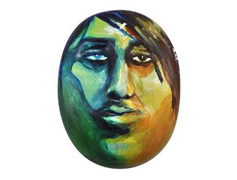 Krysta Parr of Fort Collins is a freelance graphic designer who graduated from Colorado State University in May 2011. She has been a lifelong artist working with paint, pencils, charcoal, and poetry. In the last few years, she has been especially fascinated with the human figure and face. Her mask continues her exploration with the human face and incorporates unnatural colors to signify the yin and yang in life. To every negative, there is a positive. Every person has their bad days and good days. It's the dark and bright experiences of every person that makes him or her whole, unique and human.
